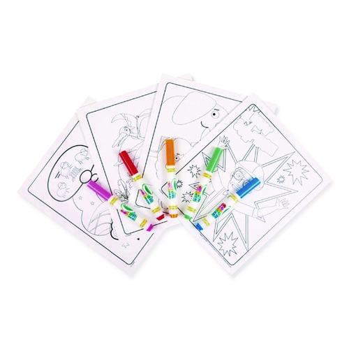 Get into high-spirits and turn real-world learning into playful adventures! With this Color Wonder Kit from Crayola®, young artists can color entertaining scenes from Blippi's popular series, while you keep art time clean. Magically mess-free, the included Color Wonder markers' ink only transfers to Color Wonder paper, never to skin, clothing, furniture or carpets. In addition to five markers, this kit includes 18 coloring pages depicting Blippi's lifelong learning excursions; and setting the stage for endless creativity, each page can accommodate all Color Wonder markers, paints and stamps (paints and stamps sold separately). Foldalope storage container keeps the pages and markers together for easy, on-the-go coloring. Thrill the young, energetic learners in your life—safe and nontoxic Color Wonder Kits are a wonderful gift idea.Package Includes: (5) Blippi's Collection Markers