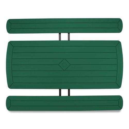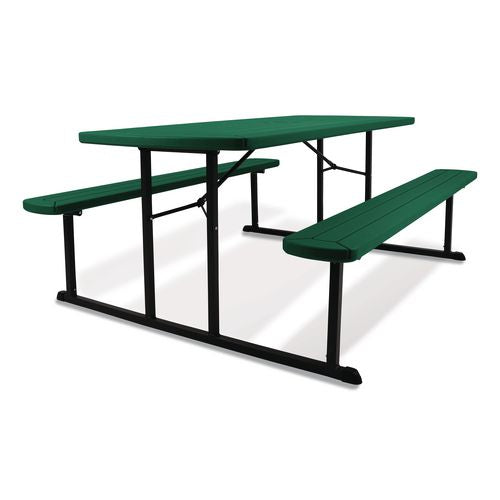 Blow Molded Folding Picnic Table, Rectangular, 57w x 72d x 29.5h, Green Top, Black Base/Legs