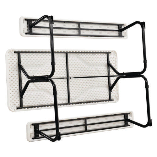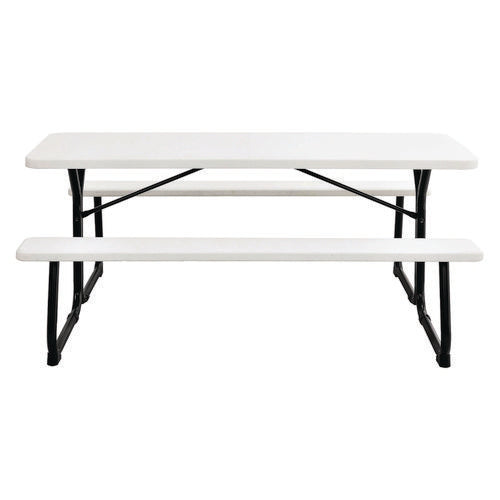 The Global Industrial™ 6 ft Outdoor Blow-Molded Plastic Picnic Table is made of sturdy HDPE plastic to endure extreme low temperatures, chemicals, and forceful impacts. This picnic table sits 6-8 people, making it a great choice for parks, school yards, and other outdoor locations. The material is moisture-proof, easy-to-clean, stain-resistant, and will not chip or crack. Its honeycomb design adds extra rigidity to the table while keeping it lightweight for simple relocating from one location to another. Rounded edges at each table corner offer added safety. Steel powder coat frame is 1.5" in diameter. Tabletop is 1.36" thick.Note: This is a non-returnable item.