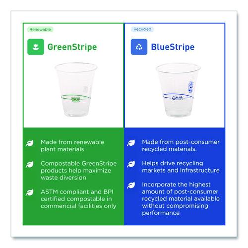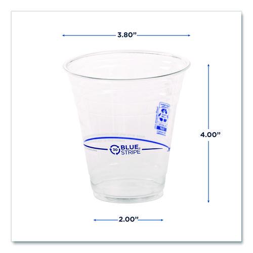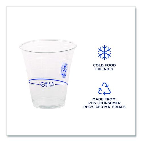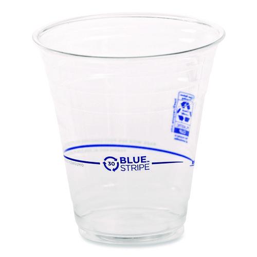 Opt for the durable and appealing BlueStripe™ cups, designed to combine strength with style. These cups are partially made from recycled PET bottles, contributing to environmental sustainability. Each cup features detailed information about its recycled content, highlighting the commitment to sustainabiity practices. The BlueStripe™ cups offer both functionality and a sleek appearance, making them a practical choice for any event or daily use. Sized to suit most beverage needs. Their robust construction ensures reliability while their recycled materials reflect a dedication to reducing waste. Choose BlueStripe™ cups to enhance your service with a responsible and attractive option.