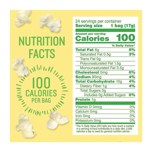 Popcorn made with real, simple ingredients for a light, healthy treat that will satisfy your mid-afternoon hunger. This flavorful snack is gluten-free and is made with only non-GMO corn for healthy, whole grain energy.Note: This is a non-returnable item.