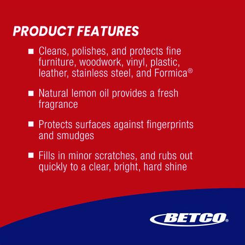 This product cleans, polishes, and protects fine furniture, woodwork, vinyl, plastic, leather, stainless steel and Formica®. A multi-purpose product, Betco® Brite easily removes old wax build-up, fills in minor scratches, and rubs out quickly to a clear, bright, hard shine.Note: This is a non-returnable item.