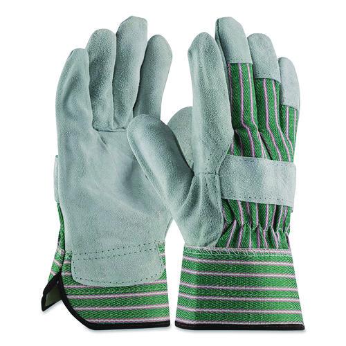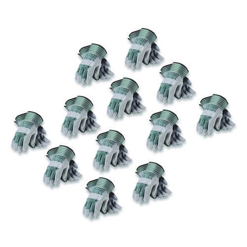 Bronze Series Leather/Fabric Work Gloves, Gunn Cut, Wing Thumb, Small (Size 7), Gray/Green, 12 Pairs