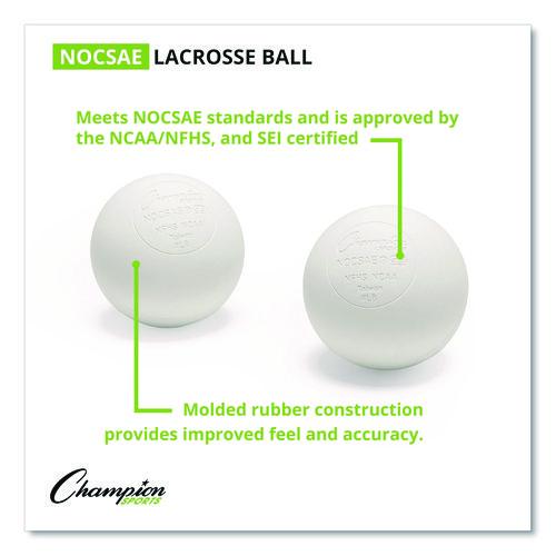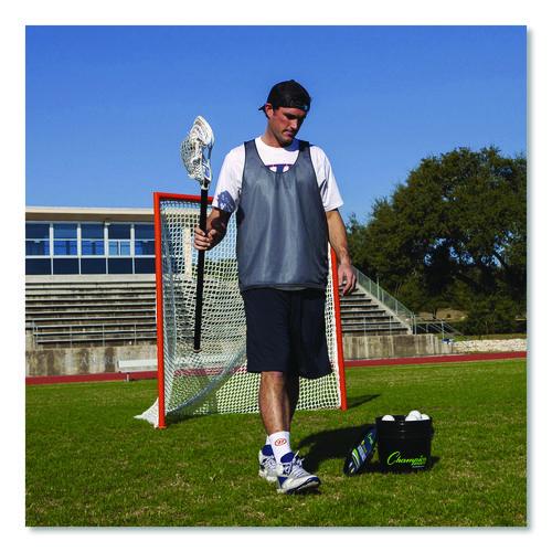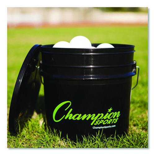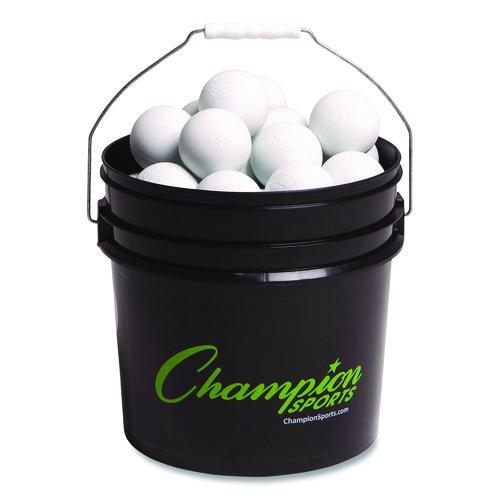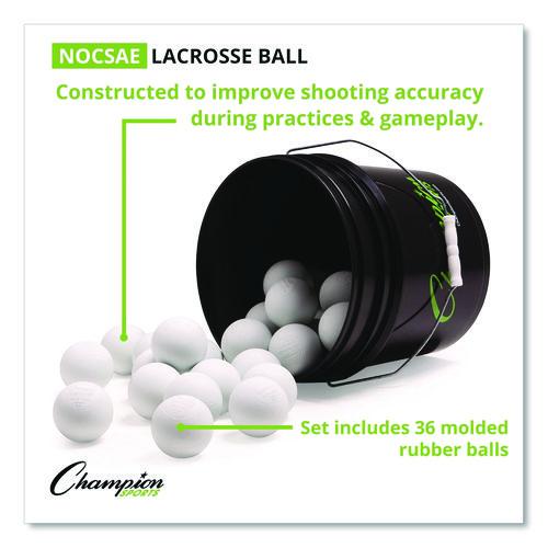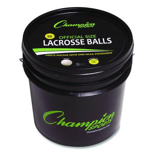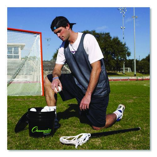 Stock up with a bucket full of regulation size, regulation weight lacrosse balls from Champion Sports. Approved by the NFHS and NCAA for official gameplay at the high school and collegiate levels, these precision molded rubber balls are designed to provide a professional feel and a proper flight profile to help ensure shooting and passing accuracy on the field. Rugged storage bucket with metal wire handle, molded plastic handgrip and lift-off lid keeps the balls neat and tidy until it's time to play. Whether you're trying out for your junior varsity team or a seasoned pro, Champion Sports Lacrosse Balls are an essential. SEI certified balls also conform to all NOCSAE® standards.Note: This is a non-returnable item.