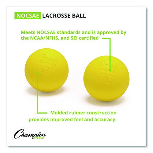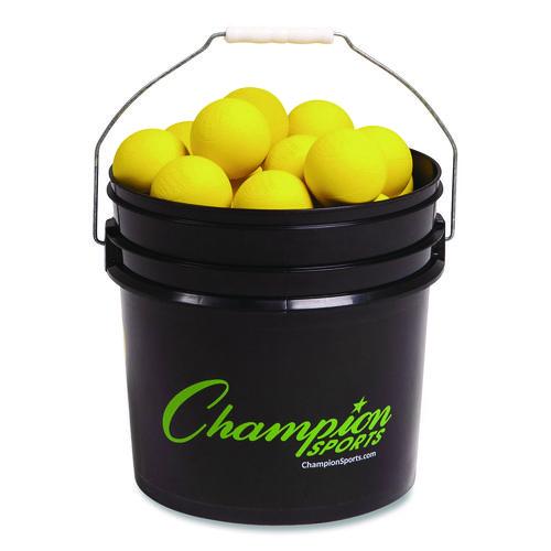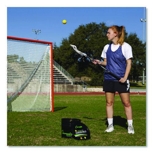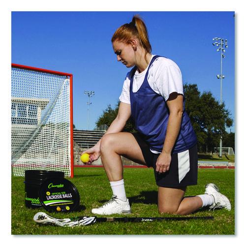 Stock up with a bucket full of regulation size, regulation weight lacrosse balls from Champion Sports. Approved by the NFHS and NCAA for official gameplay at the high school and collegiate levels, these precision molded rubber balls are designed to provide a professional feel and a proper flight profile to help ensure shooting and passing accuracy on the field. Rugged storage bucket with metal wire handle, molded plastic handgrip and lift-off lid keeps the balls neat and tidy until it's time to play. Whether you're trying out for your junior varsity team or a seasoned pro, Champion Sports Lacrosse Balls are an essential. SEI certified balls also conform to all NOCSAE® standards.Note: This is a non-returnable item.