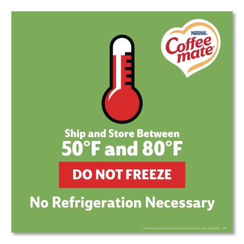 Stir up the perfect cup with Coffee mate, America's #1 creamer brand. Available in 180 count boxes, it is shelf stable with no refrigeration needed. Coffee mate flavored liquid creamer singles retain their delicious flavor at room temperature for up to nine months unopened. Find your perfect match with NESCAFE Coffee and Coffee mate flavored liquid creamer singles. Our Coffee mate liquid creamer singles are available in popular options All Coffee mate foodservice single serve creamers are cholesterol-free, gluten free and kosher dairy. See the full Coffee mate ingredients statement for Coffee mate creamer ingredients.Note: This is a non-returnable item.