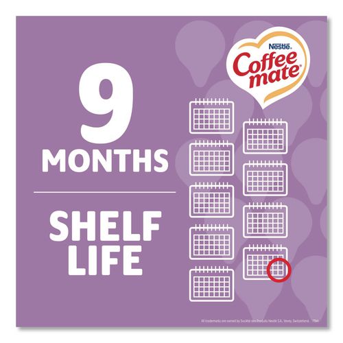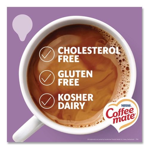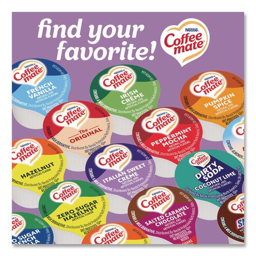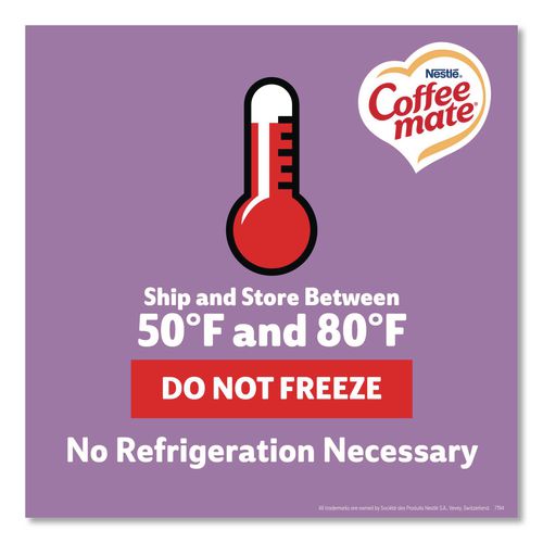 Stir up the perfect cup with Coffee mate, America's #1 creamer brand. Available in 180 count boxes, it is shelf stable with no refrigeration needed. Coffee mate flavored liquid creamer singles retain their delicious flavor at room temperature for up to nine months unopened. Find your perfect match with NESCAFE Coffee and Coffee mate flavored liquid creamer singles. Our Coffee mate liquid creamer singles are available in popular options All Coffee mate foodservice single serve creamers are cholesterol-free, gluten free and kosher dairy. See the full Coffee mate ingredients statement for Coffee mate creamer ingredients.Note: This is a non-returnable item.
