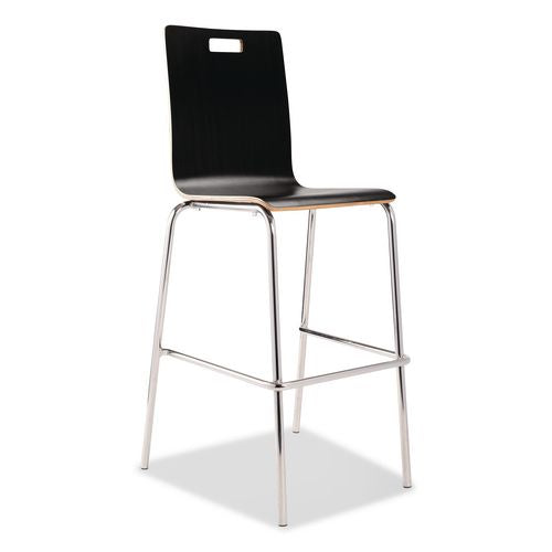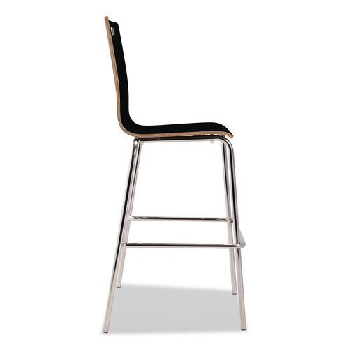 Bushwick Series Bentwood Stool, Supports Up to 500 lb, 30" Seat Height, Black Seat, Black Back, Chrome Base, 4/Pack