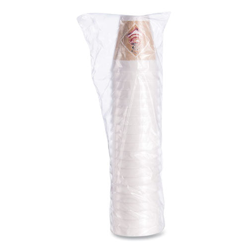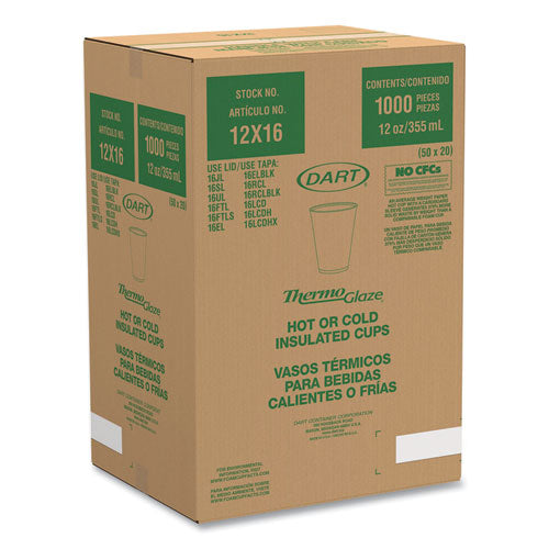 Add a touch of class to your office, breakroom or cafeteria with these attractive coffee-themed cups. Subtle color coding system helps customers and employees identify the correct cup size. Thermo-Glaze insulation helps maintain hot and cold beverage temperature while allowing you to hold cup comfortably. You'll save money because the Insulation reduces the need for double-cupping. Features attractive flared lip cup design and high-gloss surface.