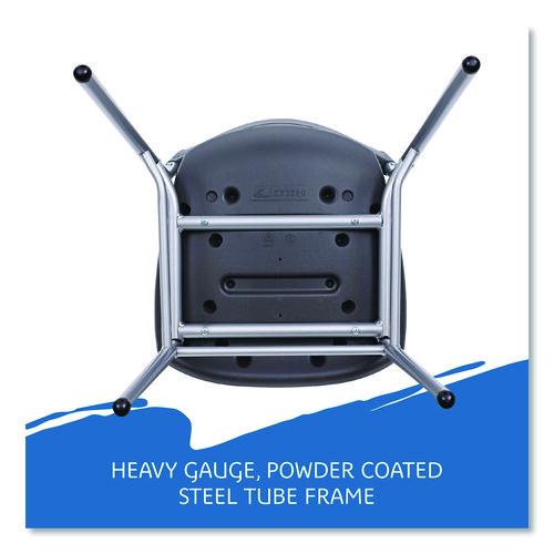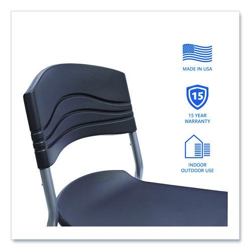 Comfortable seating for creating, collaborating and coffee. Contemporary ergonomic design with seat pan and back constructed of blow molded high-density polyethylene. Durable, dent-resistant and easy-to-clean. Heavy gauge powder coated 1" steel tube frame. Supports up to 225 lbs. 18" seat height. Perfect complement to CaféWorks Tables.