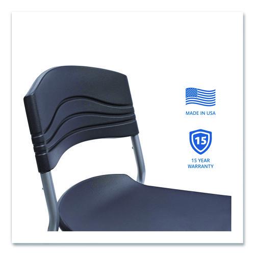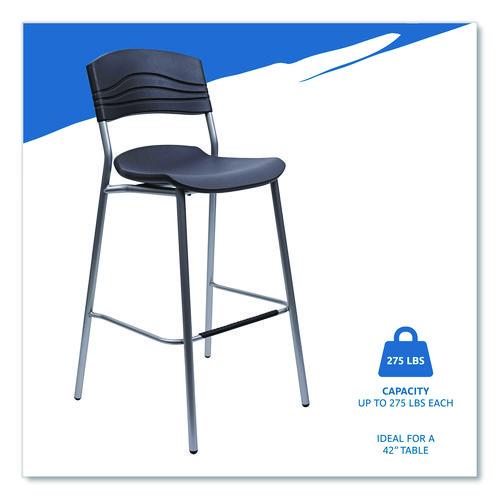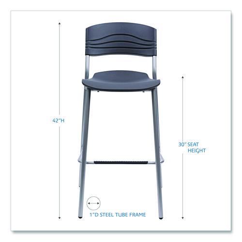 Comfortable seating for creating, collaborating and coffee. Contemporary ergonomic design with seat pan and back constructed of blow molded high-density polyethylene. Durable, dent-resistant and easy-to-clean. Heavy gauge powder coated 1" steel tube frame. Supports up to 225 lbs. 30" seat height. Perfect complement to CaféWorks Tables.