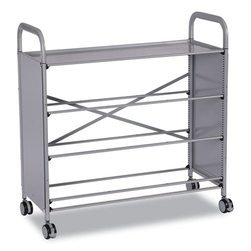 Versatile, modern and secure, the Callero Plus Treble Column Trolley is designed with STEM, STEAM and collaborative learning in mind. Its multi-bin concept and triple-wide format deliver maximum flexibility. Transport your equipment from place to place and create a one-stop central location for all of your students' necessary supplies. Child-friendly StopSafe runners make it easy to access the bins' contents while preventing the bins from being pulled out of their slot, eliminating the possibility of messy, accidental spills. At the same time, teachers can remove and/or adjust the runners to accommodate any size F-series tray: deep or shallow, either or both in one trolley. Durable steel frame is enclosed on the sides for added security, and both the frame and panels feature a tough, powder-coat finish. Ergonomic handles and included casters (two locking) make it easy to maneuver the cart either down the hall or fully across campus. Trolley's top shelf also doubles as a worksurface for demonstrating and testing out ideas. Completely free of sharp corners and edges, these trolleys are ideal for students of all ages, from Pre-K through adult learning.Package Includes: (24) Flame Red F1 Shallow Trays; (2) Locking Swivel Casters; (2) Non-Locking Swivel Casters; (4) Stationary Shelving GlidesNote: This is a non-returnable item.