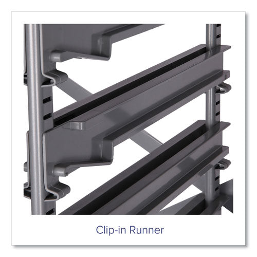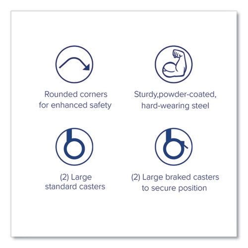 Versatile, modern and secure, the Callero Plus Treble Column Trolley is designed with STEM, STEAM and collaborative learning in mind. Its multi-bin concept and triple-wide format deliver maximum flexibility. Transport your equipment from place to place and create a one-stop central location for all of your students' necessary supplies. Child-friendly StopSafe runners make it easy to access the bins' contents while preventing the bins from being pulled out of their slot, eliminating the possibility of messy, accidental spills. At the same time, teachers can remove and/or adjust the runners to accommodate any size F-series tray: deep or shallow, either or both in one trolley. Durable steel frame is enclosed on the sides for added security, and both the frame and panels feature a tough, powder-coat finish. Ergonomic handles and included casters (two locking) make it easy to maneuver the cart either down the hall or fully across campus. Trolley's top shelf also doubles as a worksurface for demonstrating and testing out ideas. Completely free of sharp corners and edges, these trolleys are ideal for students of all ages, from Pre-K through adult learning.Package Includes: (12) Flame Red F2 Deep Trays; (2) Locking Swivel Casters; (2) Non-Locking Swivel Casters; (4) Stationary Shelving GlidesNote: This is a non-returnable item.
