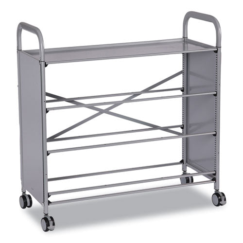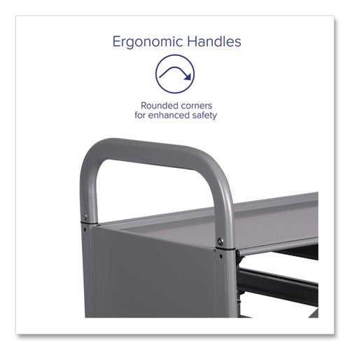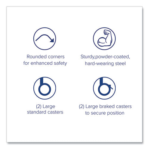 Versatile, modern and secure, the Callero Plus Treble Column Trolley is designed with STEM, STEAM and collaborative learning in mind. Its multi-bin concept and triple-wide format deliver maximum flexibility. Transport your equipment from place to place and create a one-stop central location for all of your students' necessary supplies. Child-friendly StopSafe runners make it easy to access the bins' contents while preventing the bins from being pulled out of their slot, eliminating the possibility of messy, accidental spills. At the same time, teachers can remove and/or adjust the runners to accommodate any size F-series tray: deep or shallow, either or both in one trolley. Durable steel frame is enclosed on the sides for added security, and both the frame and panels feature a tough, powder-coat finish. Ergonomic handles and included casters (two locking) make it easy to maneuver the cart either down the hall or fully across campus. Trolley's top shelf also doubles as a worksurface for demonstrating and testing out ideas. Completely free of sharp corners and edges, these trolleys are ideal for students of all ages, from Pre-K through adult learning.Package Includes: (16) Light Gray F1 1.85 gal Capacity 3.25" Shallow Trays; (4) Light Gray F2 3.57 gal Capacity 6.25" Deep Trays; (2) Locking Swivel Casters; (2) Non-Locking Swivel Casters; (4) Stationary Shelving GlidesNote: This is a non-returnable item.
