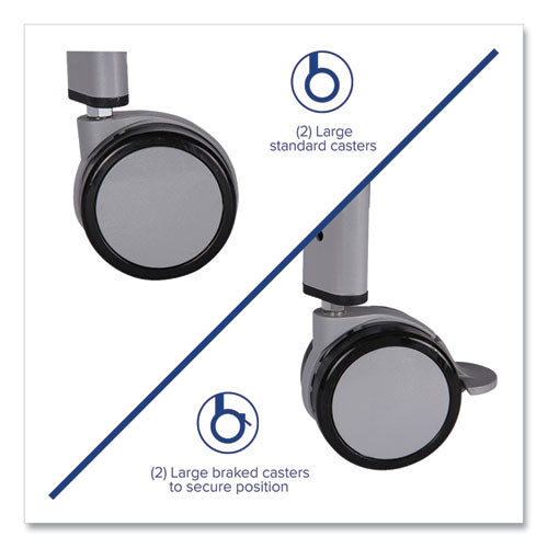 Part of the ultra-flexible Callero range, the Callero Tilted Tray Trolley takes the multi-bin concept a step further with tilt-position crossbars for enhanced visibility and easier access to the bins' contents, making this trolley ideal for classrooms where independent and collaborative learning is encouraged. Anyone of any age should be able to quickly find what they're looking for. Durable steel frame is enclosed on the sides, and both the frame and panels feature a tough, powder-coat finish. Ergonomic handles and included casters (two locking) make it easy to maneuver the cart either down the hall or fully across campus. Completely free of sharp corners and edges, these trolleys are ideal for students of all ages, from Pre-K through adult learning, but they're particularly well-suited to primary education environments. Tilt Tray Trolleys also integrate seamlessly with all Callero and Callero Plus systems.Package Includes: (9) Flame Red F2 Deep Trays; (2) Locking Swivel Casters; (2) Non-Locking Swivel Casters; (4) Stationary Shelving GlidesNote: This is a non-returnable item.