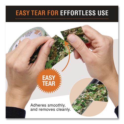 Our high-performance camo printed duct tape combines rugged durability with standout style. This tape delivers premium adhesion for all your heavy-duty tasks—from moving boxes and sealing cartons to organizing gear or storing long-term. It's built to hold in hot and cold temperatures, and fits perfectly with Tape Terror Pro and most standard dispensers. Ideal for shipping, mailing, organizing and more.