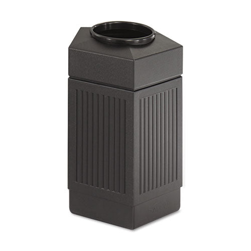Canmeleon Open Top Pentagon Trash Can features five fluted panel sides with a molded plastic open top to create an attractive value-priced garbage can that beautifies your business while keeping it clean and litter free. Molded from high-density polyethylene with UV inhibitors, this waste container performs well in both outdoor and indoor conditions. Telescoping base hides liner bag and includes a recessed bottom for easy maintenance. For weather resistance or to prevent vandalism, bottom of weather-resistant trash container can be fastened to the pavement or weighted with sand or paving bricks. Ideal for use on outdoor patios, meeting spaces, cafés, hotels, recreational and picnic areas, corporate and college campuses, boardwalks, malls, tourist attractions and other high traffic outdoor locations.