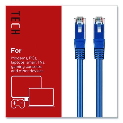 Connect high-speed network devices - like modems, PCs, laptops, smart TVs, gaming consoles and more - with this Staples TECH Ethernet cable. It provides ample length to connect from across the room, while the CAT6 configuration offers data transfer speeds up to 10 Gbps for fast performance. This Staples TECH CAT6 Ethernet cable has snag-free RJ45 connectors for an efficient and stable signal between compatible devices.