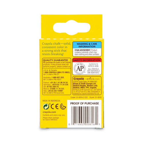 Bring home long-lasting chalk for craft rooms and art easels with craft chalk from Crayola. Crayola Chalk gives you solid, consistent color in a strong stick that resists breaking! Use it on children's chalkboards, construction paper, cardboard, craft paper and brown paper bags. This kid's chalk creates less dust for crisp, clean doodles, notes and drawings. It's a craft room essential for parents, with the reliability you expect from Crayola art supplies.