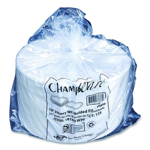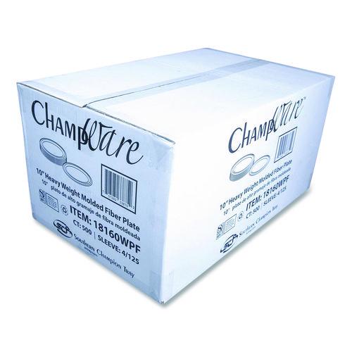 ChampWare Molded Fiber Tableware, Molded Fiber Plate, 10" dia, White, 125 Plates/Sleeve, 4 Sleeves/Carton