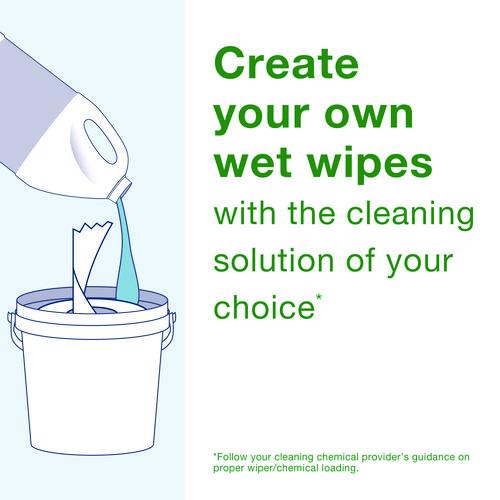Make your own wet wipes with these Chem-Ready buckets. Simply place the roll of dry wipes into the compatible bucket and add your preferred water-based cleaning solution, sanitizer, or disinfectant cleaning chemical. The buckets are high capacity and portable, so staff can carry wipes wherever they are needed. Chem-Ready provides closed system cleaning that's more hygienic, safer and simpler than traditional open bucket or spray bottle systems. Plus, the resealable lid prevents spills and protects wipes from drying out. Compatible with Everwipe by Tork W11 refills.