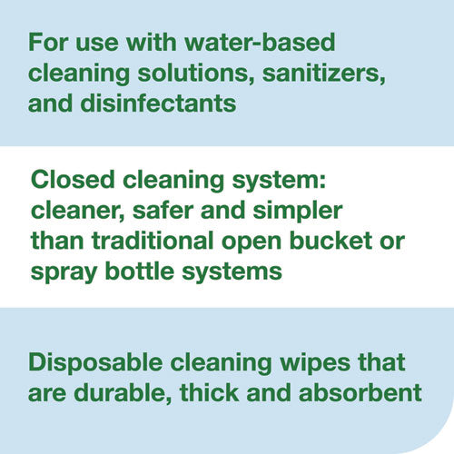 Save time and improve surface cleanliness with these Everwipe by Tork Chem-Ready Wiping Rolls. Simply place the roll of dry wipes into the compatible bucket and add your preferred water-based cleaning solution, sanitizer or disinfectant cleaning chemical. Chem-Ready provides closed system cleaning that's more hygienic, safer and simpler than traditional open bucket or spray bottle systems. Plus, these dry wipes are engineered with small pockets to effectively scrub and trap dirt. Compatible with the Everwipe by Tork W11 dispenser.