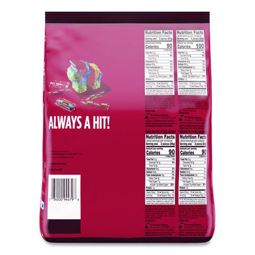 With a bulk party pack of assorted Twizzlers chewy candies ready for action, you'll never find yourself without a delicious shareable snack. This party pack includes Twizzlers Twists Strawberry flavor chewy candy, Twizzlers PULL 'n' PEEL Cherry flavor chewy candy, Twizzlers Twists Rainbow flavor chewy candy, and Twizzlers PULL 'n' PEEL Watermelon flavor chewy candy. Whether you're in the mood for a classic Twizzlers treat or want to try a new vibrant flavor, you'll be set with this assortment party pack. Keep your pantry stocked with kosher-certified Twizzlers chewy candies, store some in your work desk, or take a bag on a road trip or to your next party gathering. Looking for an even greater adventure? For a unique twist, melt several white creme or milk chocolate bars (sold separately), dip your Twizzlers candies in the melted gooeyness, then cover each piece in sprinkles, and let the new treats cool. They even make scrumptious holiday treats for Christmas stocking stuffers, Halloween trick-or-treat bags, Easter baskets, and Valentine's Day presents.Note: This is a non-returnable item.