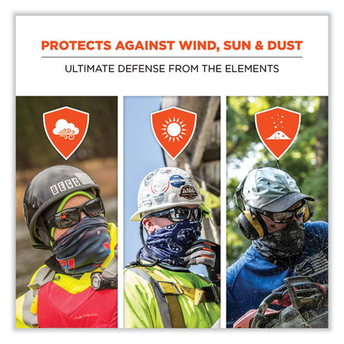 The Chill-Its 6485 Multi-Band offers head and face protection from the sun, dust and flying debris. Plus, it features moisture-wicking technology to absorb sweat and wick moisture away. This multi-band features supremely versatile performance fabric with a multitude of uses and ways to wear. This PPE safety headwear is incredibly versatile. The soft, stretchable knit material allows the multi-band to be worn as a cooling headband, neck gaiter, face mask or face covering, hat, dew rag and more. It can also be worn under a hard hat to wick moisture on hot days. Anti-Odor treatment keeps it fresh all day long. Hang dry or machine wash as needed. Great for construction, landscaping, roofing, or anybody working in the heat. It can also be used to keep cool and reduce the risk of heat stress while gardening, hiking, playing sports and more.Note: This is a non-returnable item.