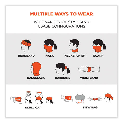 The Chill-Its 6485 Multi-Band offers head and face protection from the sun, dust and flying debris. Plus, it features moisture-wicking technology to absorb sweat and wick moisture away. This multi-band features supremely versatile performance fabric with a multitude of uses and ways to wear. This PPE safety headwear is incredibly versatile. The soft, stretchable knit material allows the multi-band to be worn as a cooling headband, neck gaiter, face mask or face covering, hat, dew rag and more. It can also be worn under a hard hat to wick moisture on hot days. Anti-Odor treatment keeps it fresh all day long. Hang dry or machine wash as needed. Great for construction, landscaping, roofing, or anybody working in the heat. It can also be used to keep cool and reduce the risk of heat stress while gardening, hiking, playing sports and more.Note: This is a non-returnable item.