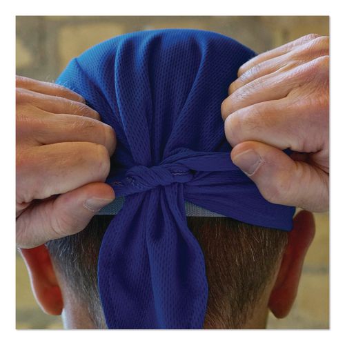 The Chill-Its 6615 High-Performance Bandana Doo Rag with Terry Cloth Sweatband is made with Hi Cool moisture-wicking technology to keep workers comfortably cool and dry on hot days. The Hi Cool performance fabric wicks moisture for quick-drying, while the absorbent terry cloth sweatband prevents sweat from dripping into eyes. This low-profile cooling doo rag can be worn alone or under a hard hat. One size fits most, the back features an elastic band that stretches to comfortably fit a variety of head sizes. To be worn correctly, the three pieces of fabric should also be tied in a knot. Machine wash as needed and hang to dry. Ideal for construction, landscaping, roofing or anyone working in the heat. It is also a great bandana headband for running, hiking and other recreational activities.Note: This is a non-returnable item.