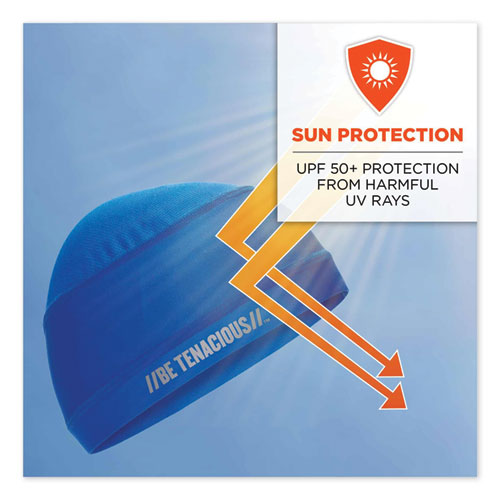 The Chill-Its 6632 Cooling Skull Cap is a low-profile cap that wicks away moisture when worn dry and provides evaporative cooling relief when worn wet. Designed with stretchy performance knit fabric to provide UPF 50+ sun protection against harmful UV rays. An elastic band lines the interior for a snug and comfortable fit. In order to activate, just soak in water until saturated, then wring out excess water. The evaporative cooling process begins instantly and lasts for hours. If wearing dry, the moisture-wicking fabric draws perspiration away to help keep you dry. Anti-odor treatment keeps this cooling headwear fresh, while reflective accents ensure workers are seen in low-light conditions. The low-profile design fits comfortably under a hard hat or helmet and is great for construction workers, landscaping, roofing, or anybody working in the heat. It can also be used to reduce the risk of heat stress while mountain biking, motorcycling, gardening, hiking, playing sports and more.Note: This is a non-returnable item.