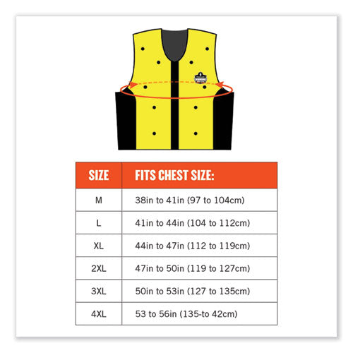 The Chill-Its 6685 Dry Evaporative Cooling Vest offers immediate dry cooling relief that lasts up to three days. The exclusive dry evaporative technology keeps the wearer completely dry and comfortable as opposed to other cooling vests on the market that require soaking. Constructed with high-visibility industrial grade quality nylon to perform in the toughest conditions. Designed with front zipper closure, and the mesh side panels provide additional ventilation and stretch for a comfortable fit. This lightweight cooling vest is machine washable and can be reused over and over. To activate, simply fill the vest with 13 oz to 20 oz water for immediate and long-lasting cooling relief. Not to be worn underneath thick layers of clothing, this vest needs airflow in order to activate and for the evaporation process to take place. Do not clean the inside reservoir. Cooling material is treated with an antimicrobial that inhibits mold growth on the product.Note: This is a non-returnable item.