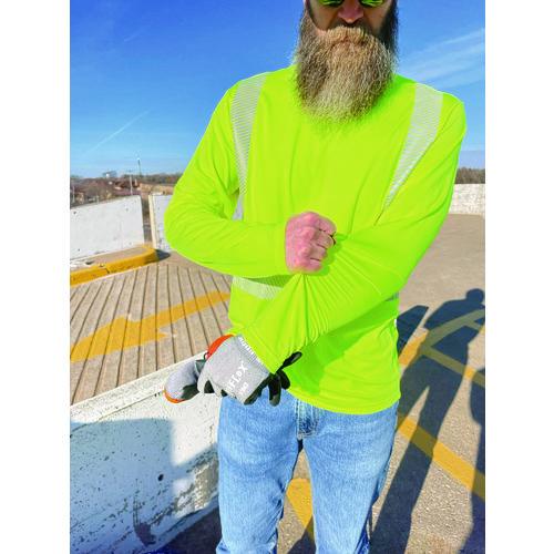 The Chill-Its 6688 Cooling Hi-Vis Sun Shirt with UV Protection is a Type R Class 2 shirt designed for enhanced visibility and breathable comfort. This sun shirt features evaporative technology for immediate cooling and UPF 50+ protection against the sun's harmful rays when working outside. Built with a performance fit, this long sleeve sun shirt is designed with a stretch fabric that provides easy mobility and unrestricted movement. Featuring moisture-wicking technology, an anti-odor treatment and breathable mesh paneling in the underarms and back, this long sleeve sun shirt will keep workers comfortably fresh, cool and dry all day. Simply wet the cooling shirt to activate instant cooling relief that lasts for hours. When activated, this long sleeve shirt is lightweight and refreshing for even the hottest days of the year. This hi-vis long-sleeve shirt is ideal for anyone requiring Type R, Class 2 apparel, particularly those seeking cool comfort when working in the heat. It can also be used to keep cool and reduce the risk of heat stress while fishing, gardening, hiking, playing sports and more.Note: This is a non-returnable item.