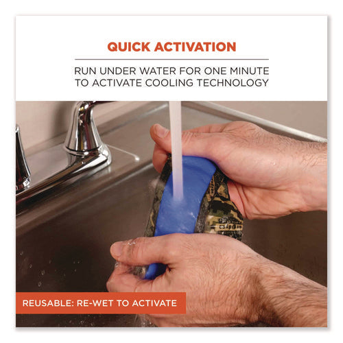 The Chill-Its 6700CT Cooling Bandana features advanced PVA cooling technology for relief in extreme heat. Lightweight and low-profile, this bandana is perfect for wear around the neck or under hard hats. A tie closure in the back makes for an adjustable, snug fit on a variety of head sizes. Heat-related illness continuously ranks among the top causes of worksite accidents and fatalities. Evaporative cooling technologies such as PVA (polyvinyl alcohol) are a simple, effective and comfortable solution for heat stress prevention. Similar to how sweat cools the body, evaporative technologies use an external water source to draw heat away-helping to regulate body temperature while providing cool relief. When activated, this PVA cooling bandana is comfortable and refreshing for even the hottest days of the year.Note: This is a non-returnable item.