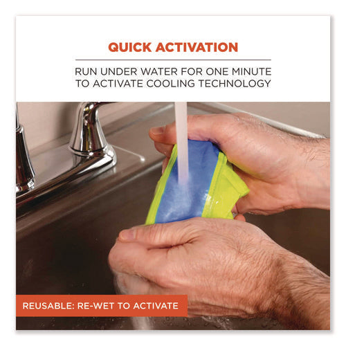 The Chill-Its 6700CT Cooling Bandana features advanced PVA cooling technology for relief in extreme heat. Lightweight and low-profile, this bandana is perfect for wear around the neck or under hard hats. A tie closure in the back makes for an adjustable, snug fit on a variety of head sizes. Heat-related illness continuously ranks among the top causes of worksite accidents and fatalities. Evaporative cooling technologies such as PVA (polyvinyl alcohol) are a simple, effective and comfortable solution for heat stress prevention. Similar to how sweat cools the body, evaporative technologies use an external water source to draw heat away-helping to regulate body temperature while providing cool relief. When activated, this PVA cooling bandana is comfortable and refreshing for even the hottest days of the year.Note: This is a non-returnable item.