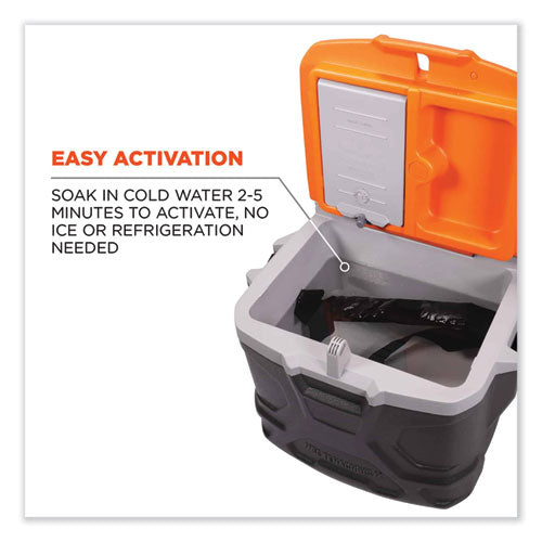 The Chill-Its 6702 Cooling Bandana is an evaporative cooling headband designed to deliver instant cooling relief lasting up to four hours. This lightweight bandana is designed with polymer crystal technology embedded in a batting material for fast cooling. Embedding the polymer crystals reduces uneven expansion of the polymers when wet (less bulk, more comfort). Use the tie-closure to adjust the fit around the head, neck or wrists. Simply soak the cooling headwear in water for 2 to 5 minutes to activate. The water-absorbing polymer crystals inside will plump up slightly and provide a cooling sensation that lasts for hours. The new woven batting material will not become overly saturated and will not ooze or become slimy. Simply flip the cooling bandana over to refresh the cooling sensation. No ice or refrigeration is needed. Hang dry and rewet to activate. Great for construction, landscaping, roofing, or anybody working in the heat.Note: This is a non-returnable item.