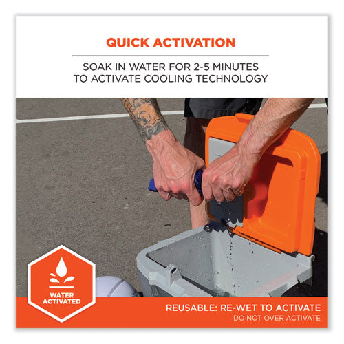 The Chill-Its 6717 Cooling Hard Hat Pad with Neck Shade straps into hard hats to deliver four hours of cooling relief while also shading the neck from sun damage. The low-profile and lightweight liner pad with shade features cooling acrylic polymers for instant cooling without bulk or slime, making it comfortable to wear under hard hats. The wide panel shade extends down for complete back-of-neck-coverage. This hard hat liner pad fits most hard hats and safety helmets, easily attaching to the suspension with two hook and loop straps. Heat-related illness continuously ranks among the top causes of worksite accidents and fatalities. Evaporative cooling technologies such as polymer crystals are a simple, effective and comfortable solution for heat stress prevention.Note: This is a non-returnable item.
