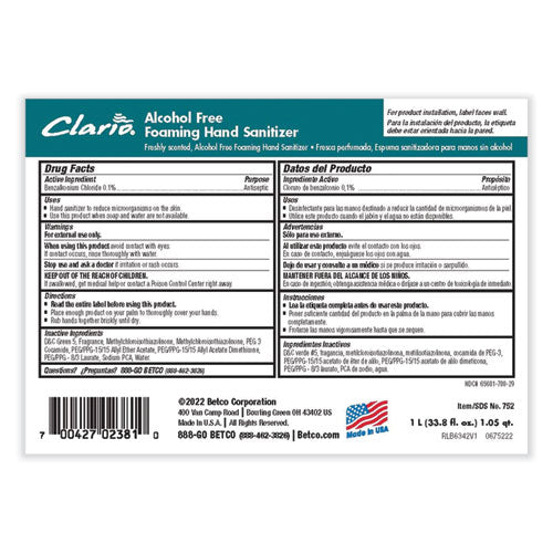 Formulated with a well-recognized antimicrobial to kill germs quickly, this creamy foaming lather is enriched with air to provide thorough sanitizing while using almost 50% less liquid than traditional alcohol-based hand sanitizers.