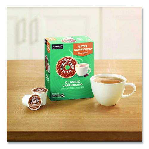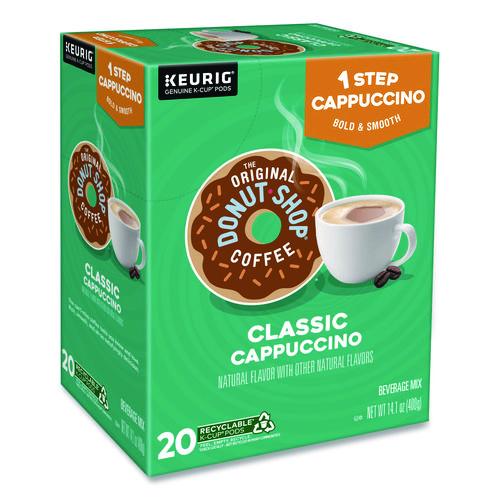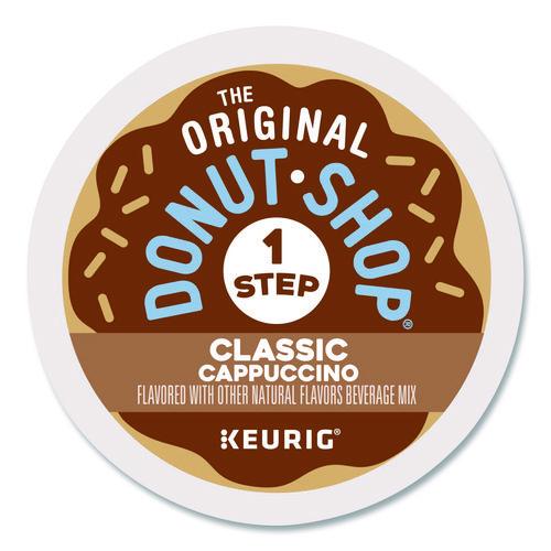 One-Step Cappuccinos, are a line of K-Cup pods from The Original Donut Shop® that allow you to brew delicious cappuccinos at just the push of a button on your Keurig brewer. Nothing beats a perfectly made cappuccino. So rich. So flavorful. So easy! Everything you need to make your perfect cappuccino, all-in-one. It's the bold taste you love, made right when you want it, at the touch of a button. Beverage Mix made with real dairy. No sweetener or creamer needed. Just brew on the 10 oz setting and enjoy! (Choose the 8 oz setting for an even bolder coffee taste.)Note: This is a non-returnable item.