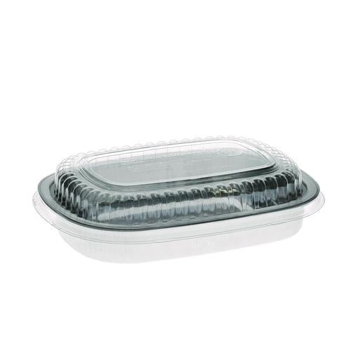 Classic Carry-Out® aluminum containers offer an upscale image for your Home Meal Replacement program that consumers find attractive and versatile. In addition to being ovenable, the heavy-duty aluminum protects food and preserves the quality of meats, seafood, prepared entrees, side dishes and bakery foods. Containers allow food to be prepared, stored, transported and reheated (in the oven) all in the same packaging and are compatible with heat-sealed film. Accompanying lids provide a leak-resistant seal.