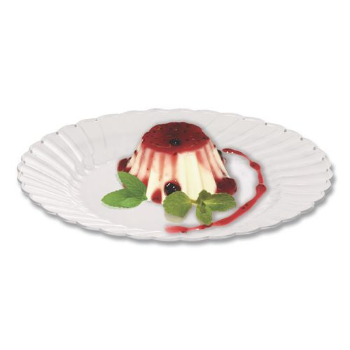 Stylish plastic dinnerware is made to be sturdy. Presents the elegance of china in a more durable plastic form. Provides the convenience of easy cleanup and disposability. Adds a touch of grace to any occasion.