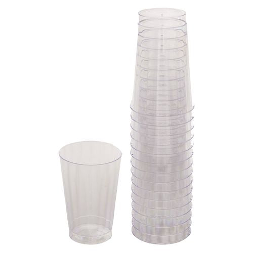 Stylish plastic tumblers are made to be sturdy. Classic, unadorned design is a sleek accompaniment to any party or catered event. Tumblers combine the elegance of glass in a more durable plastic form. Plastic tumblers provide the convenience of easy cleanup and disposability.
