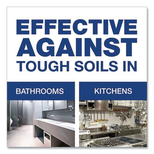 A unique two-in-one all purpose cleaner that combines the cleaning power of heavy-duty detergents with the stain-removal power of bleach. Contains patented cleaning technologies and no abrasives to clean the full range of tough kitchen and restroom soils like tracked-in dirt and scuffmarks. Task areas include customer and employee restroom surfaces, kitchens, the inside and outside of plastic trash containers, and greasy equipment containers.Package Includes: (3) 1 gal Bottles; 1 Empty Bottle; 1 Trigger Sprayer