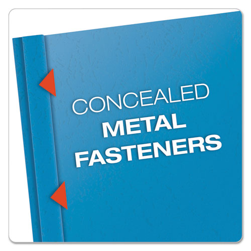 Clear view draws the reader in. First page can include report name and customized graphics. Standard-grade leatherette embossed back cover.