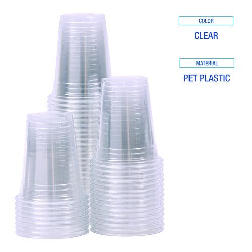 The clear option for cold drinks, high-quality PET plastic cups provide an upscale feel at an economical price. Durable and sturdy leakproof plastic cups are great for daily use, events, or offices. Thoughtfully designed with ridges around the cup and a thick rim for gripping or using a lid. The exceptional clarity of the plastic allows you to showcase snacks, cutlery, or other small items.