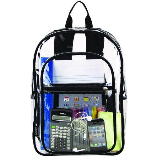 Ideal for school, sporting events, concerts and airports. It offers quick access for items but stays secure with zipper closure and a top webbing loop for hangability. Constructed of heavy-duty PVC and has double stitched seams for enhanced durability. Stands up to heavy loads without tearing.