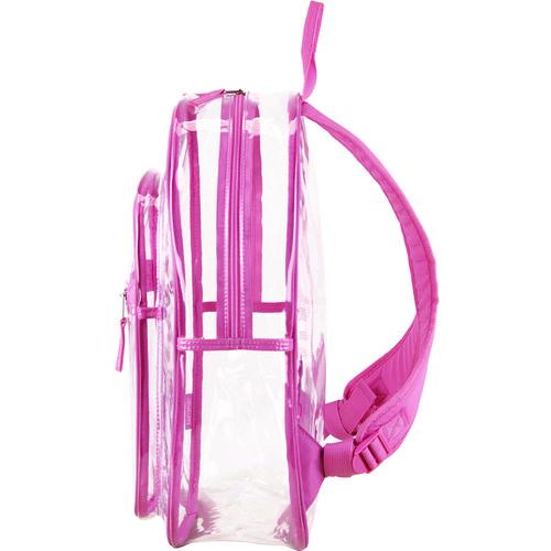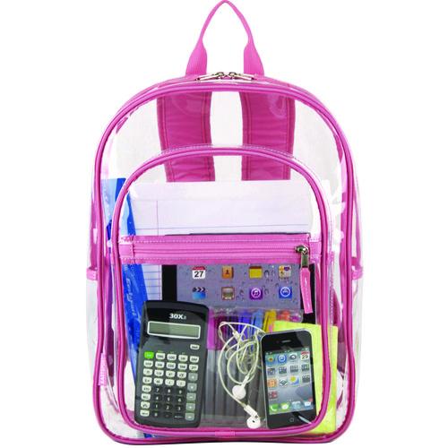 Ideal for school, sporting events, concerts and airports. It offers quick access for items but stays secure with zipper closure and a top webbing loop for hangability. Constructed of heavy-duty PVC and has double stitched seams for enhanced durability. Stands up to heavy loads without tearing.