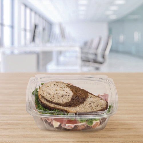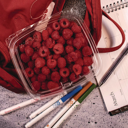 The TamperAlert Hinge protrudes outward when torn, alerting the customer that the container has been opened. The hinge remains attached to the container, for no loose plastic pieces. ClearPac® SafeSeal containers function as an easy to re-close and re-open, leak resistant two-piece container once the hinge is torn. Features exceptional performance in cold temperatures and accommodates freezing down to -22°F.