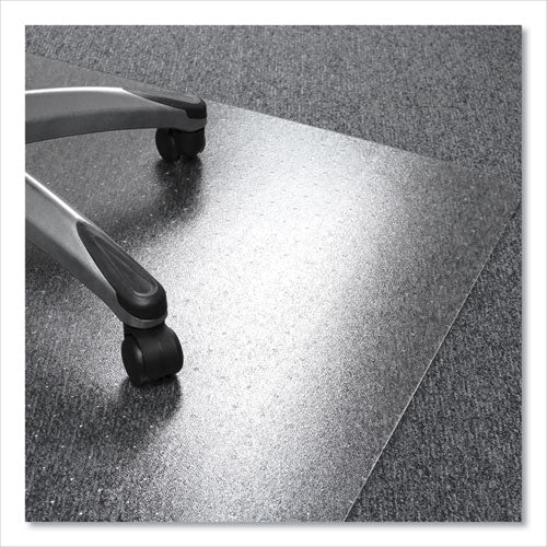 Cleartex Ultimat polycarbonate chair mat is the ultimate in quality and durability in floor protection and ergonomics. This high clarity chairmat for carpeted flooring is made from Floortex Original polycarbonate, which has double the impact strength of PVC and will not crack, curl, discolor or smell. The perfectly flat and hard surface provides easy glide movement of caster-based chairs which can reduce leg fatigue and lower back strain. Ultimat is free from phthalates, PVC and toxic chemicals. An ideal choice for people with allergies. Fifty percent of our manufacturing site's energy coming from on-site and external renewable sources. 100% recyclable. Our polycarbonate mats lie perfectly flat from delivery and can be used immediately.
