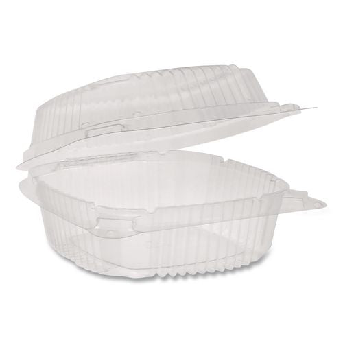 Enhance your packaging with the clarity and distinction of PET bakery containers. Our packaging effortlessly combines style and functionality to meet all your food packaging needs effectively. Made from strong PET material with a wide temperature resilience range (-20°F to 120°F) enables placement in freezers and heated display cases. Crystal clear packaging to optimize merchandising of baked goods. Great for merchandising bakery items, cheeses, produce, sandwiches, and more. SmartLock® system features a tight, audible click closure that helps ensure maximum food freshness. Smooth front panel makes sticker-labeling easy. Strong, rib-reinforced sides and back accommodate heavy items and provide enhanced crush resistance. Break-resistant hinge is flexible enough for easy closure and reliable enough for repeated openings and closings.